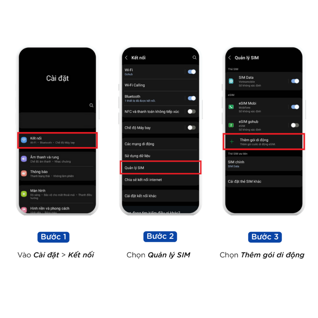 - eSIM chỉ có thể được cài đặt khi có kết nối internet.
